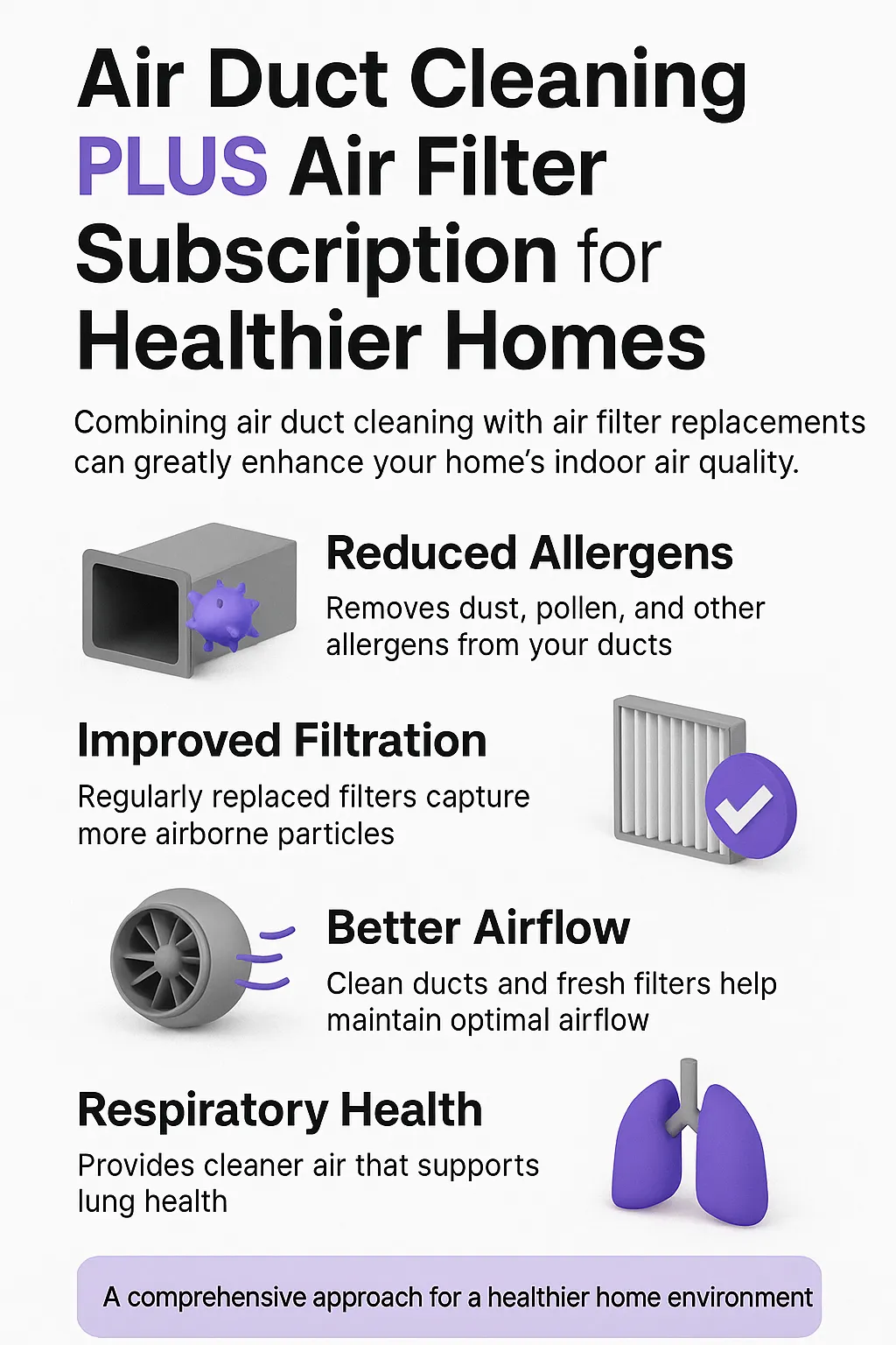 Routine duct cleaning and filter subscriptions work together to reduce pollutants and improve air quality long-term.