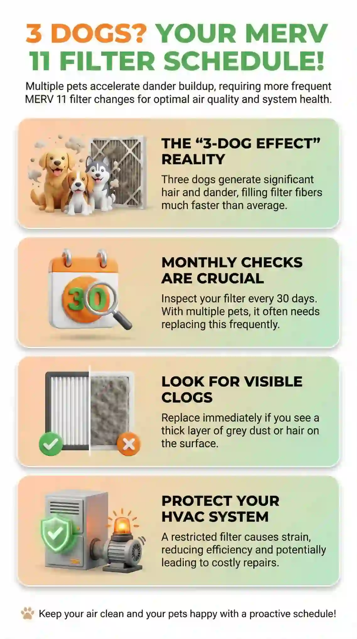 Q: Will my HVAC system handle MERV 11 with 3 dogs loading it faster?
